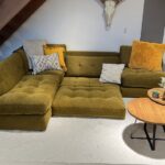 Deze bank is speciaal ontworpen om heerlijk te kunnen relaxen. U kunt er normaal op zitten maar deze is ook te gebruiken als heerlijke slaapbank. Omdat de romp onder de zitkussens ook volledig geveerd is, maakt dat deze ook perfect ligt. Door de losse elementen kunt u zelf de bank helemaal zelf samenstellen. De subtiele armleuningen geven net voldoende steun. Ontworpen door Eva van de Ven, bekend van VT wonen, weer verliefd op je huis. Kom langs en ervaar deze mooie bank zelf ! een 1,5L + 1,5R is 240 cm breed en is leverbaar vanaf € 1990,-