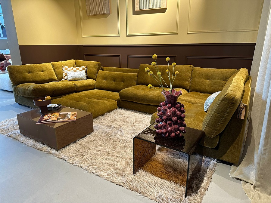 Deze bank is speciaal ontworpen om heerlijk te kunnen relaxen. U kunt er normaal op zitten maar deze is ook te gebruiken als heerlijke slaapbank. Omdat de romp onder de zitkussens ook volledig geveerd is, maakt dat deze ook perfect ligt. Door de losse elementen kunt u zelf de bank helemaal zelf samenstellen. De subtiele armleuningen geven net voldoende steun. Ontworpen door Eva van de Ven, bekend van VT wonen, weer verliefd op je huis. Kom langs en ervaar deze mooie bank zelf ! een 1,5L + 1,5R is 240 cm breed en is leverbaar vanaf € 1990,-
